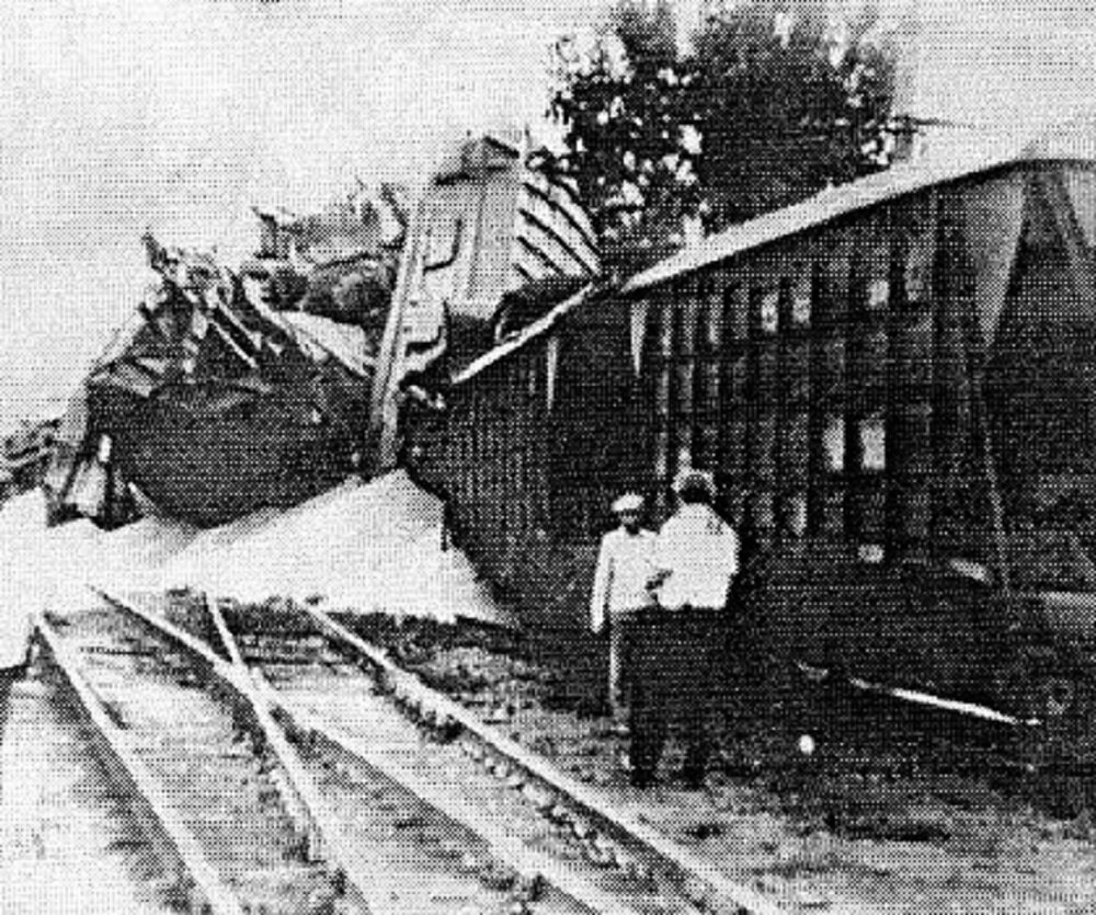 Результаты расследования под грифом до сих пор. Насколько я разговаривал с людьми, работавшими тогда на ЮВжд, завала было четыре на станции: первый - в южной горловине, второй у здания вокзала, где врезался электровоз в 335-й, третий - ближе к южной горловине из-за смещения и перескока через башмаки стоявших на боковых путях (на фото нет) грузовых вагонов, в которые влетел завал из вагонов в южной горловине, и четвертый завал в середине и ближе к концу станции, его на фото нет - 8 вагонов проскочили по главному пути и слетели уже дальше на станции.