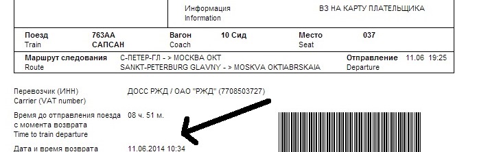 Обнаружил сегодня, что при возврате билета отображается некорректное системное время: