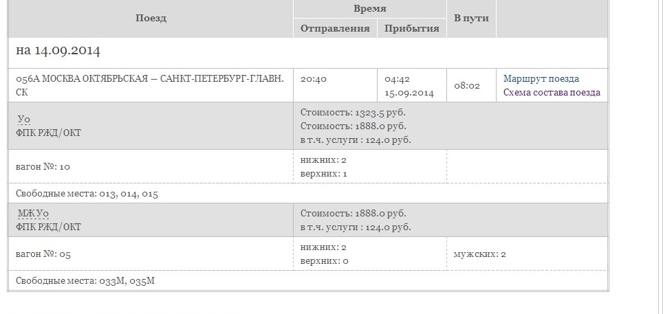 За сутки до отправления поезда в наличии оставалось два нижних мужских места. А сейчас снялась суточная бронь и появилось несколько мест по следующим ценам:
