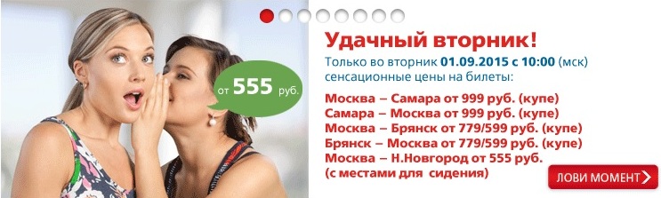 В таком случае логично было бы не ограничиваться вторниками, а объявить скидку на определенный период на определенный список поездов. Или, сделав наконец динаму прозрачной и понятной - это решится само собой (коэффициент, учитывающий направление в зависимости от даты, который, очевидно, итак есть - понятно, что на популярные в данный период направления цены накручивают, на непопулярные скидывают, просто никто из потенциальных пассажиров не знает в какой именно период и какой именно коэффициент действует, чтобы спланировать поездку).
