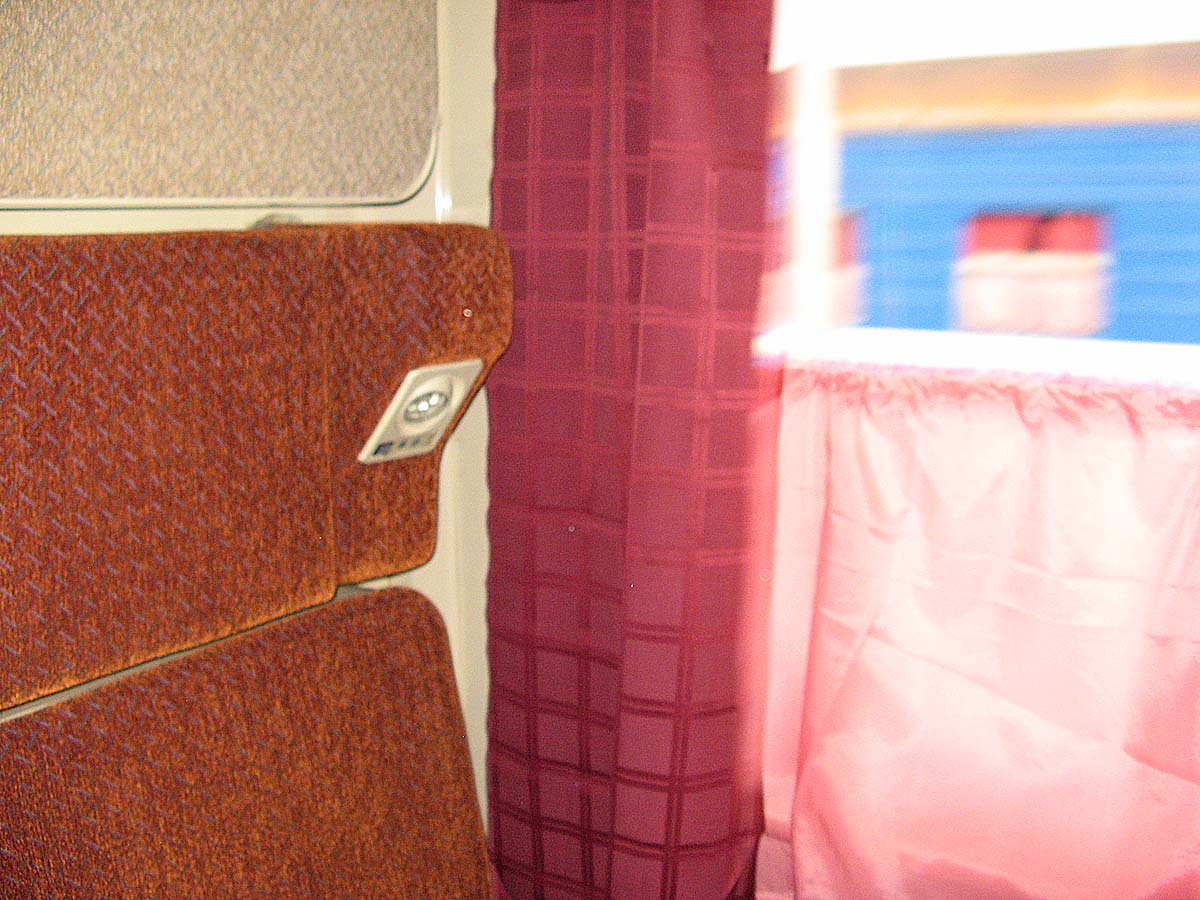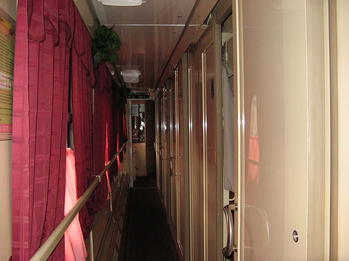 К стыду своему скажу, что я не разбирался досконально в том вагоне (надо бы найти фото поездки - возможно, что-то в кадр попало), но таки был коричневый транс на тех самых дисковых телегах. Если к этому моменту (весна 2007-го) Минск подобное уже клепал, то могло быть и местное. Ребенок, кстати, помнит первое впечатление от купе, от убранных верхних полок к стене - а где же верхние полки? Он-то видел к тому моменту, что в старых моделях они поднимались не под 90 градусов, а под 45.