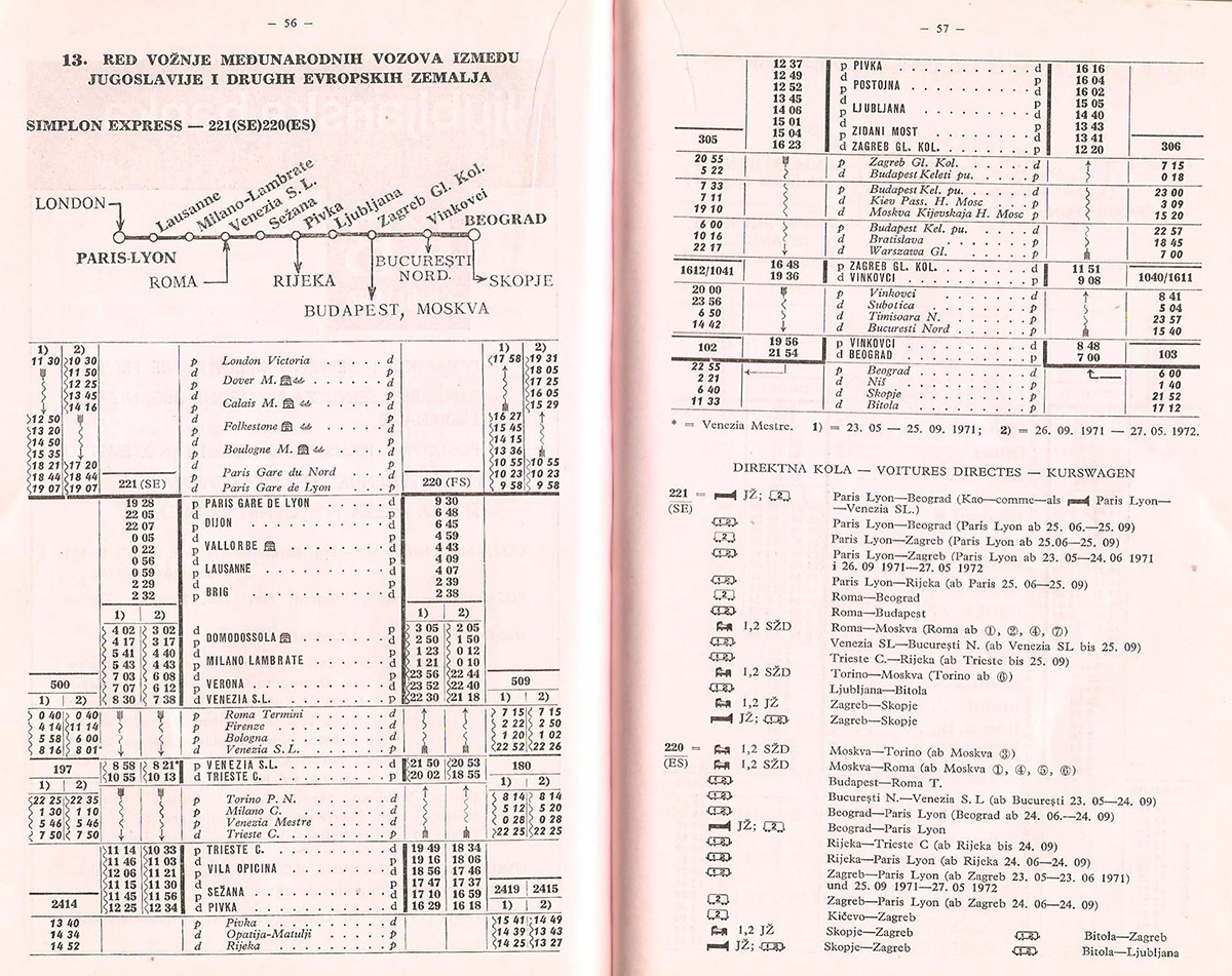 When runned between Trst and Zagreb alternatively depending on the year with Simplon Express (last period 1988-1991) or 260/261.