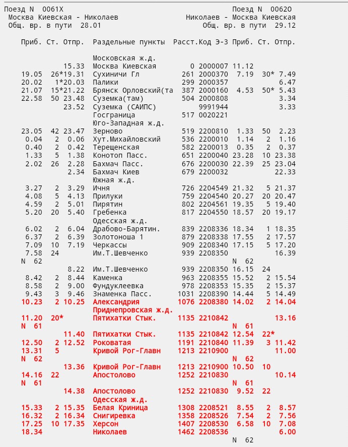 Поезд N 0259А Поезд N 0259С