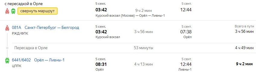 Минутку. А Курск-Ливны?