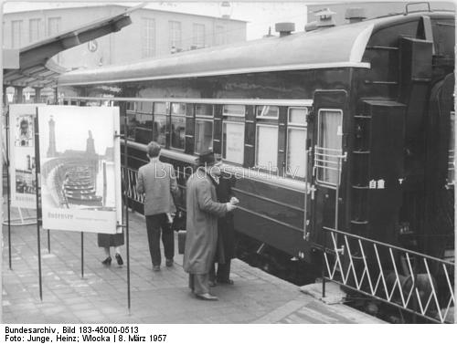 8 марта 1957 года. На ярмарке в Лейпциге VEB Wagoonbau Görlitz представляет 15-вагонный поезд-"салон". В составе — пять вагонов-салонов (один типа A, три типа B, один типа C), вагон-ресторан-"салон", нормальный вагон-ресторан, комбинированный машинный и багажный вагон, медицинский вагон, пресс-вагон, пять вагонов сопровождения в версиях 2 и 3 классов. Поезд имеет собственный источник питания — дизельный генератор. Вагон-салоны оснащены полуавтоматическим кондиционером. Каждый вагон можно толкать (?) индивидуально, у каждого 54-вольтовое освещение. Поезд объединяет 25 служебных соединений (?), а также телефон. Каждый вагон длиной 23,6 м, с буферами. Поезд поставляется с 2 комплектами тележек: стандартной и широкой колеи.