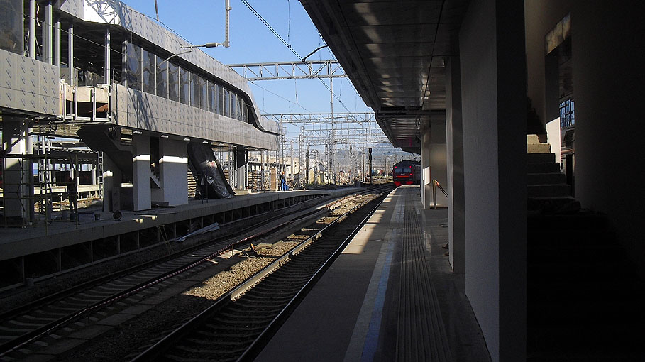 В Адлере, на данный момент, самая тяжёлая обстановка. Сплошная стройка. Работают всего 3 пути (1, 2 и 3).