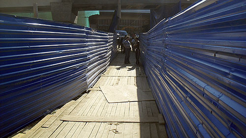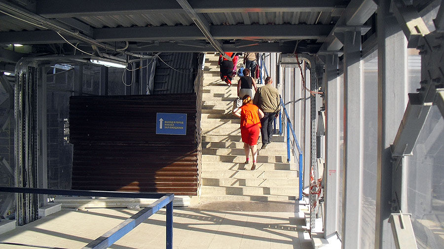 Вот так сейчас выглядит проход от здания вокзала к привокзальной площади Адлера. Этакий "Бухенвальд" ))