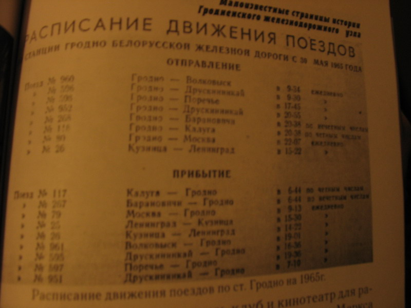SM@TRON:Расписание движения поездов по станции Гродно за 1965-й год: