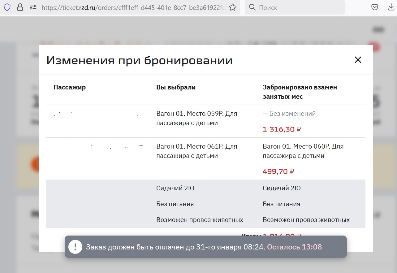 Однако возникает недоумённый вопрос: а что значит нуль в скобках? Заявка была на двух человек, а место предлагается лишь одно? И что, предлагается его купить, а дальше оставить новую заявку на второго пассажира?