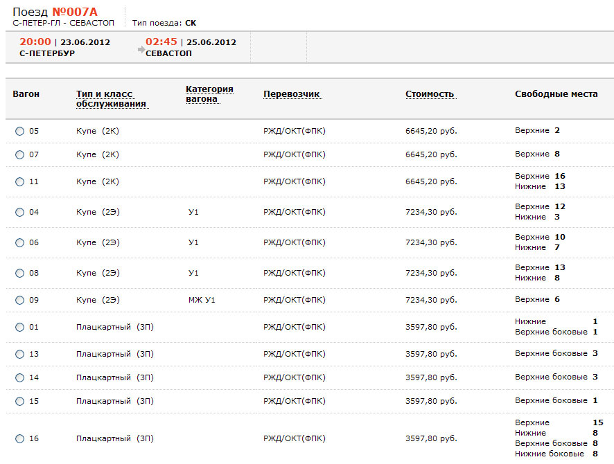 Вот, только что на 23.06 ровно в 21-30 выбросили - как и во все предыдущие дни - по целому вагону П+К :*THUMBS UP*: И мест в плацкарт еще пока полнО!