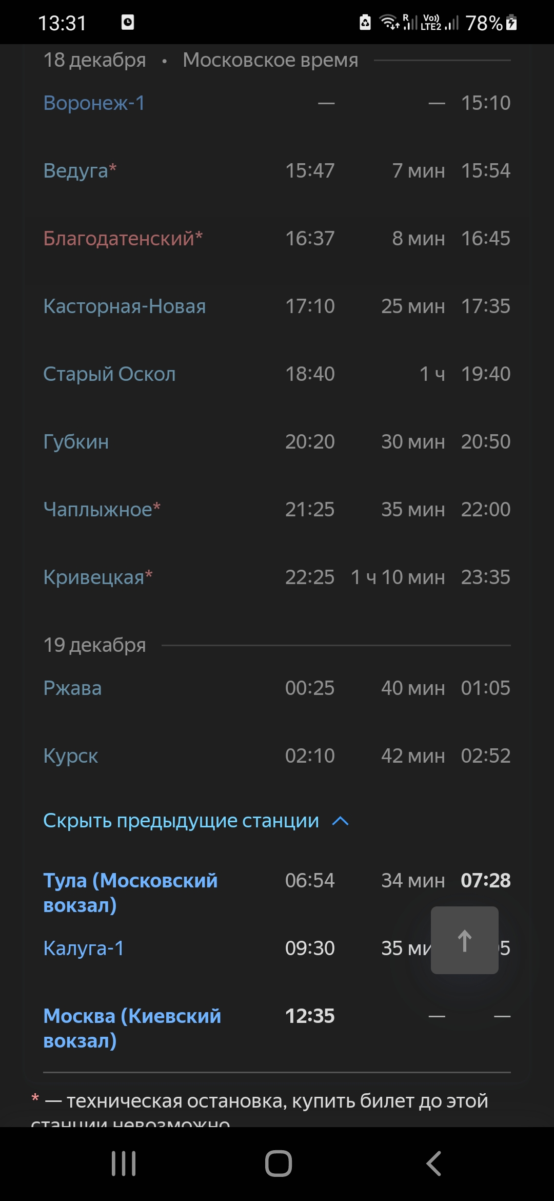Турпоездка :-). Я так однажды специально съездил подобным допом до Тамбова из Москвы через Елец-Липецк чтобы на новые виды из окна полюбоваться, а в Ельце, Грязях и погулял немного по городам в районе вокзалов, там больше получаса стоянка была.Фыва Цукен:ух.Максим П.: На сегодня назначен доп 454 Воронеж - Москва ужасно кривым маршрутом через Оскол, Курск, Тулу, Калугу.