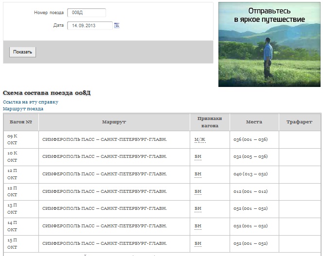 На квытке вагоны 6,7,8 тоже отсутствуют.nataly-m:Скорее, больше вызывает удивление, что сайт МЖА вместо полноценной схемы поезда 008П (как на Квытке) отображает только 4 места, на которые действует переменный трафарет по МскКур (кста, раньше трафарет на эти места был по Белгороду).