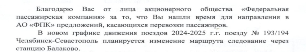 Поделитесь, пожалуйста, информацией: "В соответствии с принятыми решениями на совещаниях рабочей группы по разработке графика движения поездов предусмотреть следующие изменения в графике движения пассажирских поездов на 2024/2025 год" ...
