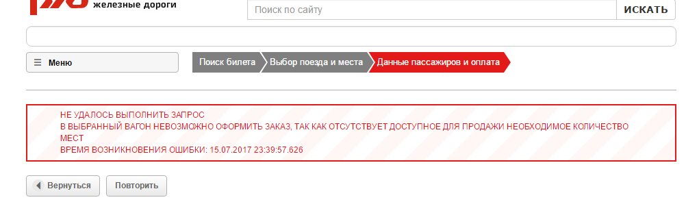 Может кто в курсе! Почему в поезде 072В Белгород - Москва, 10 купейный вагон, не доступны к продаже места 25 и 26 через сайт? Там они значатся как свободные, но попытка оформить на них заказ заканчивается провалом. ::-(: :]:-O: