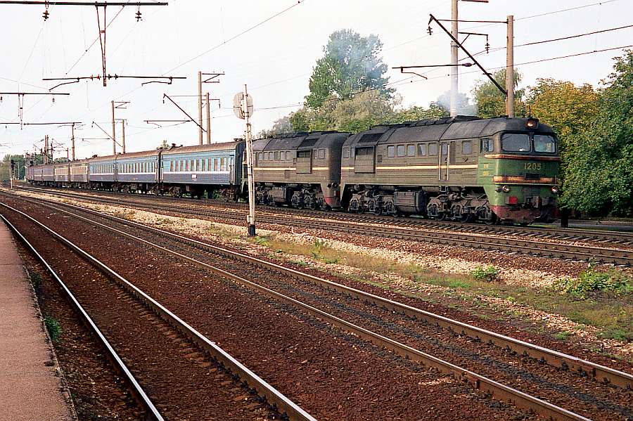 Электропоезд ЭР9Е-598 на станции Казань-Пассажирская, Татарстан (фото сделано в июле 1994 года):