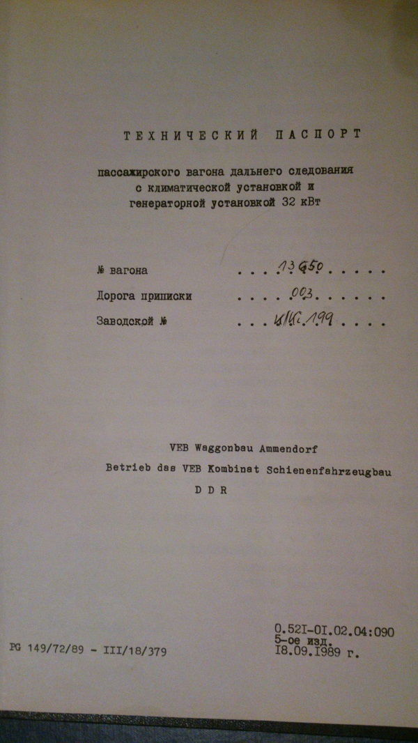 Павел, это просто великолепно! Спасибо вам за ценнейшие сведения! Похоже, что вагоны самим "Аммендорфом" строились такими. Их ровно 15?Gfif: К теме вагонов "Репина" постройки 1987 года. По табличкам там ничего особенного - на всех 15 вагонах было К/Кi-32, двухсотые номера, сентябрь 1987 года. Индексная табличка тоже ничем не отличалась от купейных собратьев.