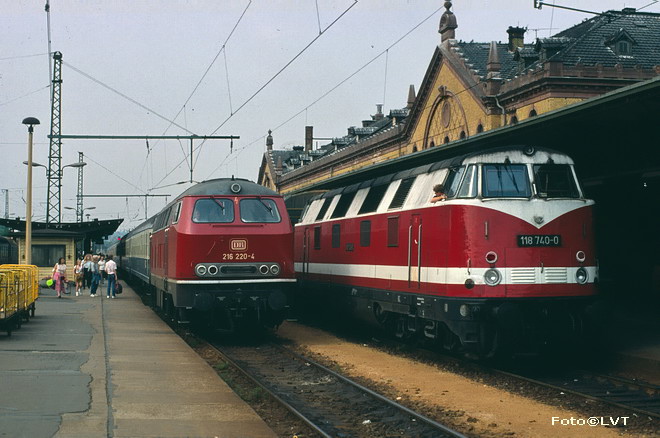 Тепловоз DR 118 321-9 с пассажирским поездом на станции Берлин-Ванзее, Германия (1973-й год):