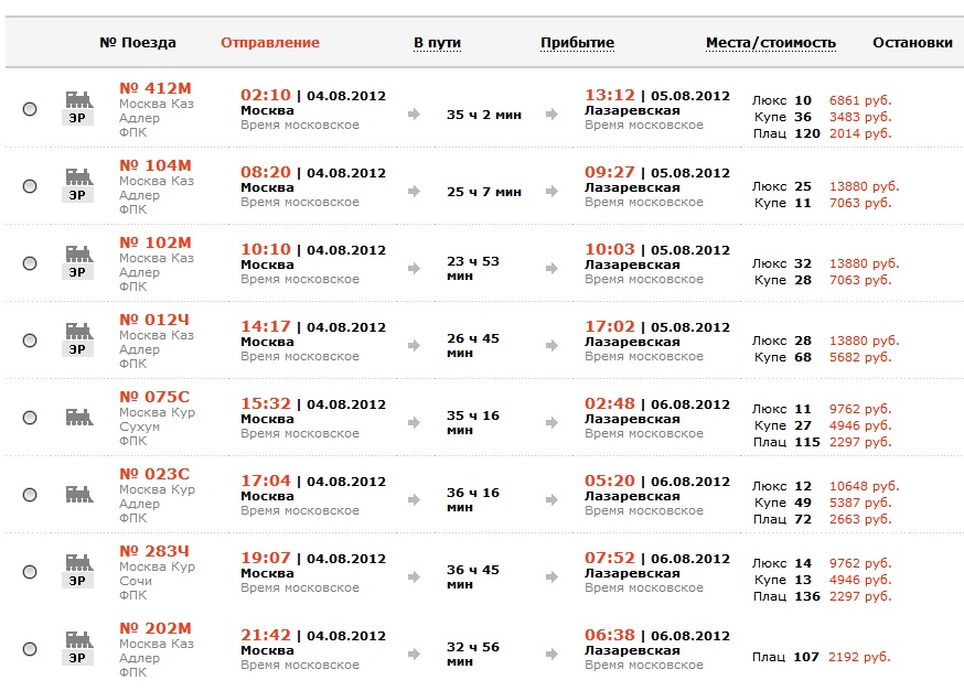 На 02.08 в сторону Сочи на 283 поезд 438 плацкартных мест, 102 купейных и 14 люксов. Вот расклад по местам: http://www.rail-club.ru/index.php?exp=1&r=Mxp ... rainPlaces