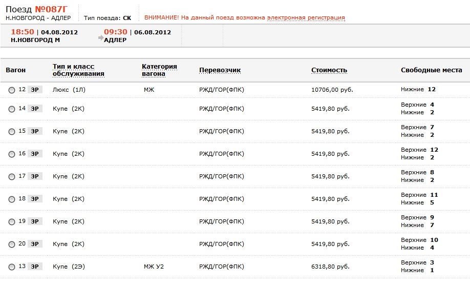 Кстати, на 04 августа Горький - Адлер плацкарт весь вынесли.
