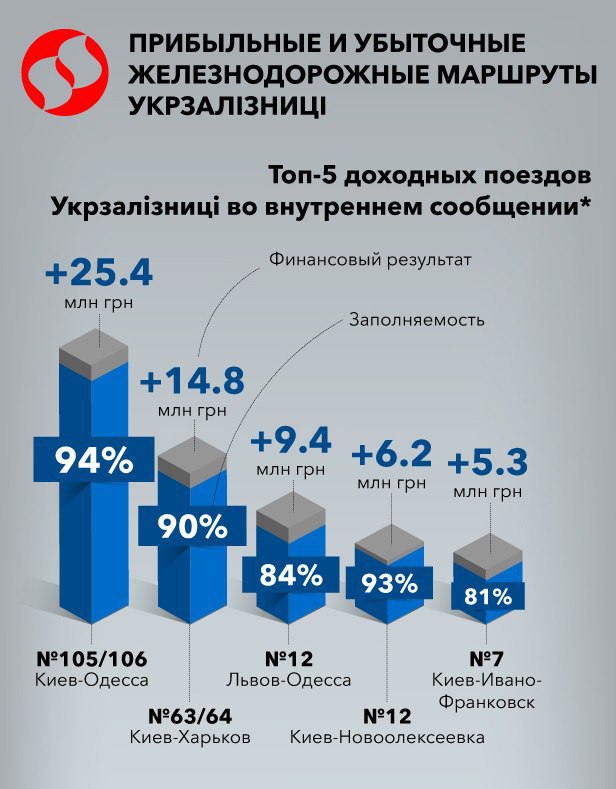 Убытки УЗ от пассажирских перевозок за 2017 г.-$360 млн,из них $150 млн - поезда дальнего следования. Один поезд Киев-Москва приносит больше выручки, чем 5 прибыльных внутренних маршрута вместе взятых