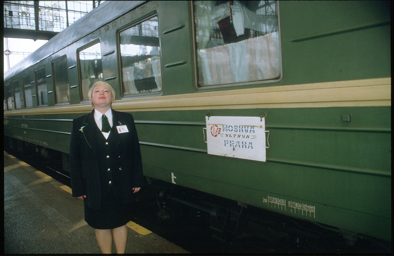 Проводник поезда "Влтава" сообщением Москва - Прага - Москва на станции Прага-Главная, Чехия (фото сделано в 1990-х годах):