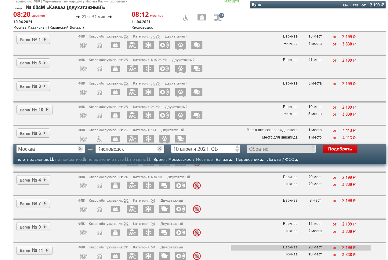 В "КАВКАЗ (ДВУХЭТАЖНЫЙ) " в некоторые даты 2-й вагон МЖ назначают.