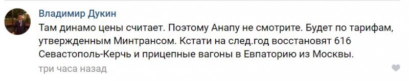 Правда что ли (про поезд Керчь-Севастополь)? Может, тогда лучше сразу из Анапы его тащить?