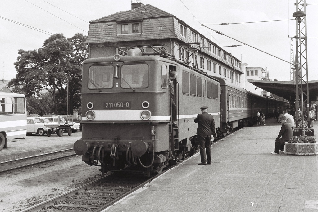 Es handelt sich um den D 1197/96 von Schwerin nach Brest über Güstrow, Neustrelitz, Fürstenberg (Tfz-Wechsel auf Baureihe 120) Templin, Eberswalde nach Frankfurt/Oder. Er war nur für Angehörige der GSSD / Westgruppe der sowjetischen Streitkräfte zugelassen. Die Ellok 211 050-0 war in Neustrelitz beheimatet und beförderte den D 1197/96 zwischen Schwerin und Fürstenberg. Bis Frankfurt/Oder zog eine Diesellok der Baureihe 120 - "Russenlok" - den "Russenzug".