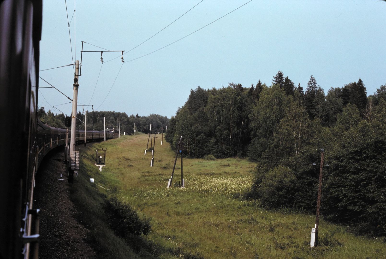 Электровоз NMBS 2721 с поездом D 240 "Ост-Вест-Экспресс" сообщением Москва - Варшава - Брюссель на станции Велкенрадт, Бельгия (4 августа 1997 года):