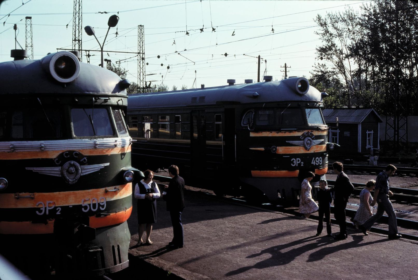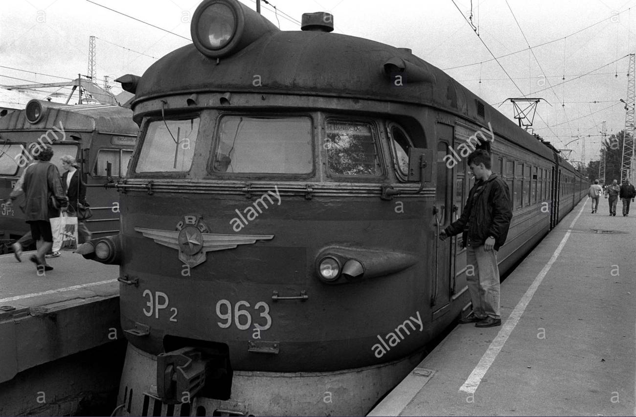 Электропоезд ЭР2-963 на станции Санкт-Петербург-Пассажирский-Московский, город Санкт-Петербург (1990-е годы):