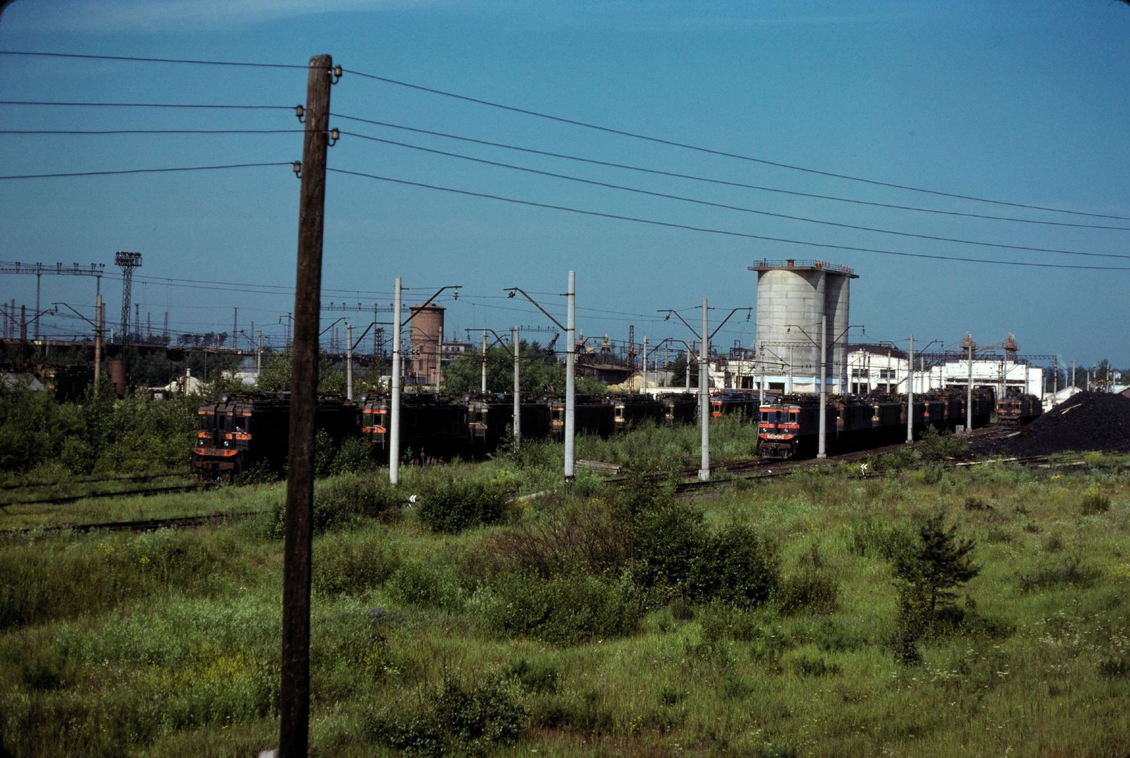 Электровоз DB 110 459-5 с поездом D 240 "Ост-Вест-Экспресс" сообщением Москва - Варшава - Брюссель на станции Штольберг-Главный, Германия (14 октября 1994 года):