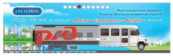 Открыта продажа проездных документов на перевозки пассажиров по маршруту Москва – Старый Оскол – Валуйки с использованием железнодорожного и автомобильного транспорта.