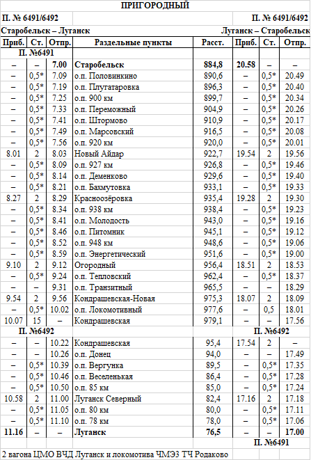 ГУП ЛНР «ЛУГАНСКАЯ ЖЕЛЕЗНАЯ ДОРОГА» СООБЩАЕТ, ЧТО С 12 ЧАСОВ 00 МИН 21.03.2022Г. ДО ОСОБОГО РАСПОРЯЖЕНИЯ НАЗНАЧАЮТСЯ ПРИГОРОДНЫЕ ПОЕЗДА НА УЧАСТКЕ СТАРОБЕЛЬСК - ЛУГАНСК - СТАРОБЕЛЬСК