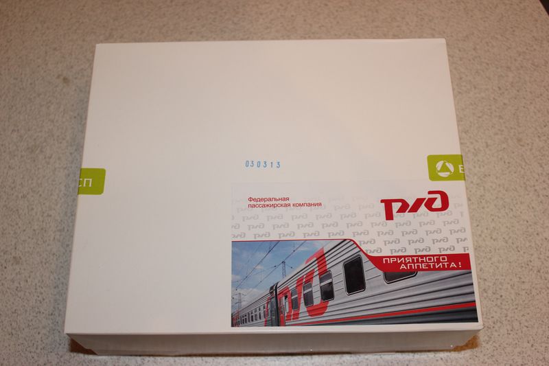Обратно ехал в «Красной стреле». Там еще веселее. Была такая же коробочка, но при отправлении начальник поезда сообщил, что питание будет предоставлено утром. В 7 утра зашел проводник и положил коробочки на стол. Воды также не было.