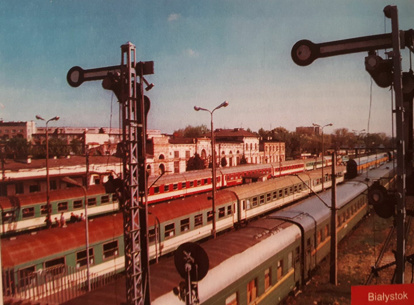 Dworzec w Białymstoku w obiektywie Pana Waldemara Goska. Zdjęcie wykonano około 1996 roku, gdy przeciągał się remont tamtejszego dworca kolejowego. Źródło: "Nowe Sygnały" z 20 marca 1997 roku.