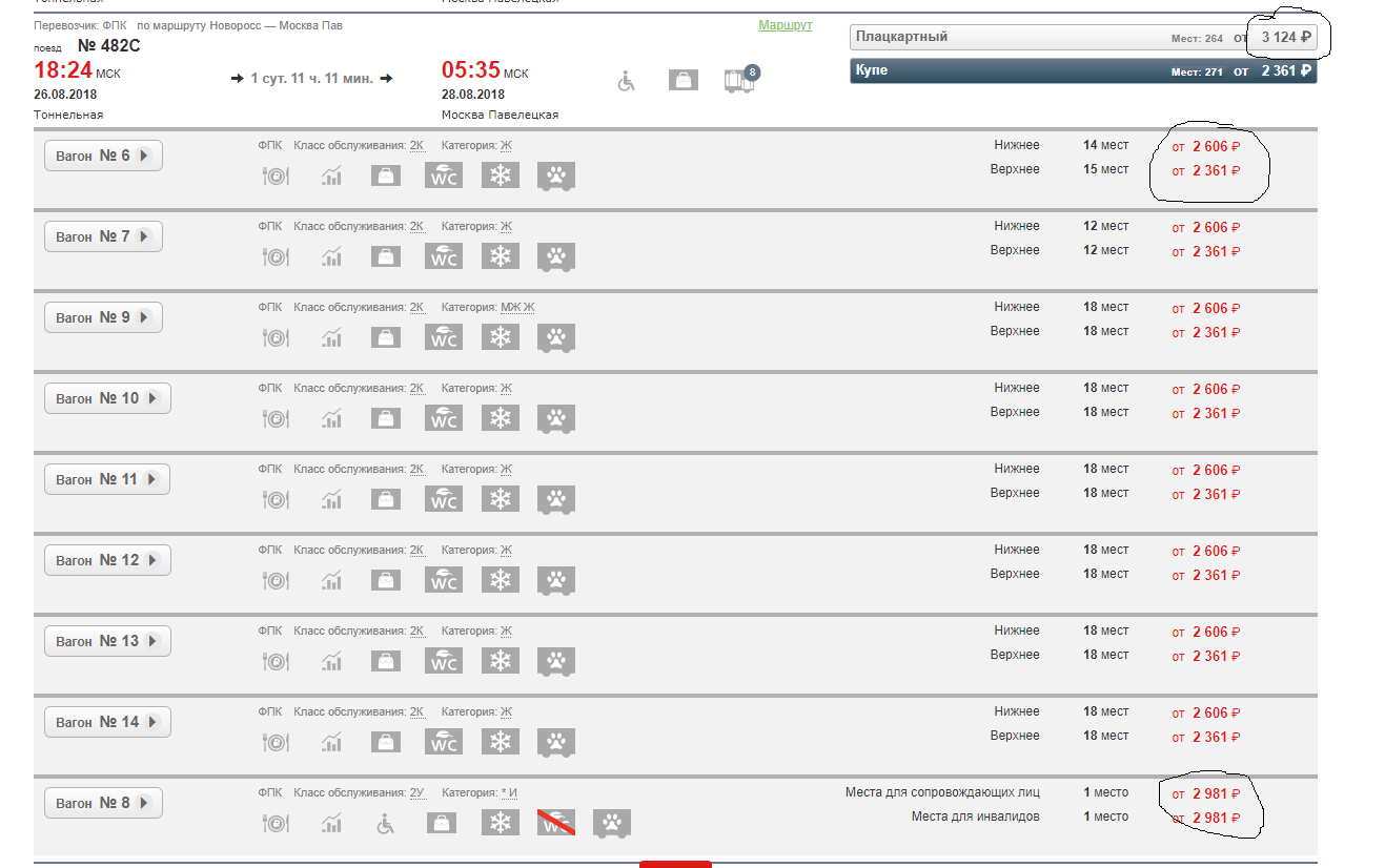 1. С даты продажи 16 мая 2018 по 8 июня 2018 действует скидка* к тарифам на проезд в общих вагонах, вагонах с местами для сидениях скорых и пассажирских поездов АО "ФПК" во внутригосударственном сообщении. 40% с 16.05 по 31.08.2018 (кроме пятниц и 09, 12.06.2018) * Скидка не действует в скоростных поездах (701-750 нумерации) и мотор-вагонном подвижном составе. Не действует при оформлении билетов по детскому тарифу, а также для организованных групп. Скидка не применяются одновременно с другими специальными тарифами/скидками.Fhctybq: А в обычные вагоны сидячие вагоны цена снизилась до 399 рублей, а в сидячие вагоны 108, 100 и 086 вообще сидячка стоит 309 рублей. С чего такая щедрость или опять глюк ДЦ? Причем такие цены не только на Москву, но и из Москвы. И в Паристом на моей памяти никогда не было цены в СВ в 2000 рублей (или это акция какая-то на СВ).