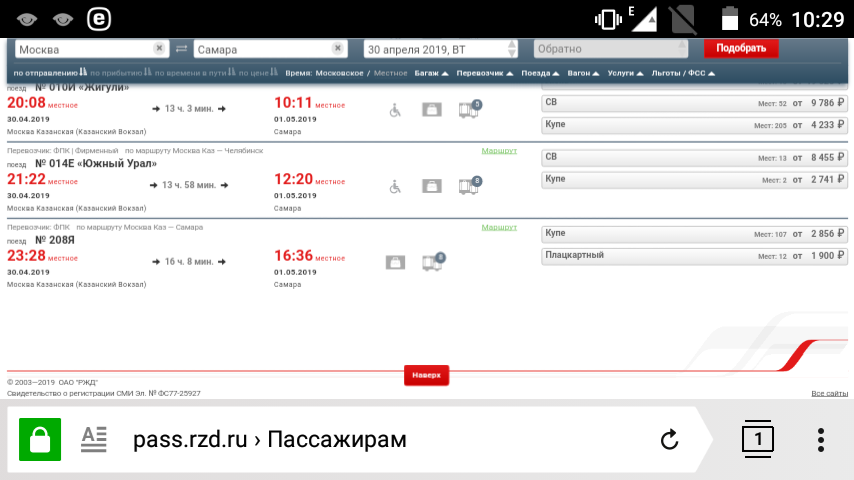 nataly-m: НЕ могу понять.. на 30.04 на поезд 208 Мск-Самара мест нет., а от Рязани (уже на 01.05) - свободно 107 в купе, и 12 в плацкарт.