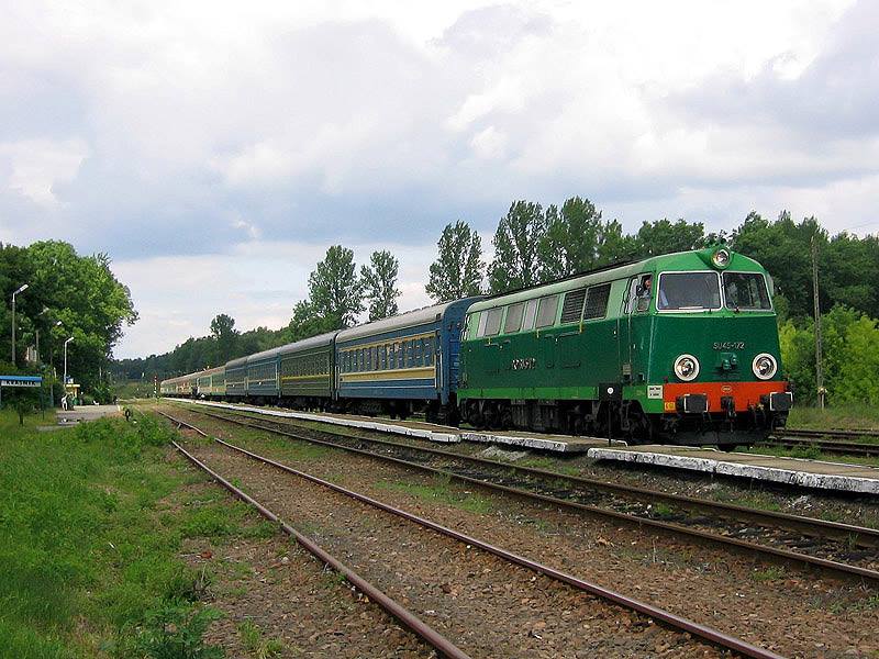 (с) Z krawędzi peronuW poniedziałkowy poranek uzupełniamy braki związane z kolejową Lubelszczyzną. Cofnijmy się do roku 2004, gdy na linii Lublin - Stalowa Wola Rozwadów powszechnym widokiem były lokomotywy SU45. Wprawdzie dzieliły już pracę z autobusami szynowymi, to jednak stałe zatrudnienie zapewniał im m.in. pociąg pospieszny 13109 "Solina" relacji Warszawa Wsch. - Przemyśl Gł./Zagórz z wagonami do Kiszyniowa i Lwowa. Na jego czele - tym razem - SU45-172 z Zakładu Taboru w Lublinie. Kraśnik, 26 czerwca 2004 roku.