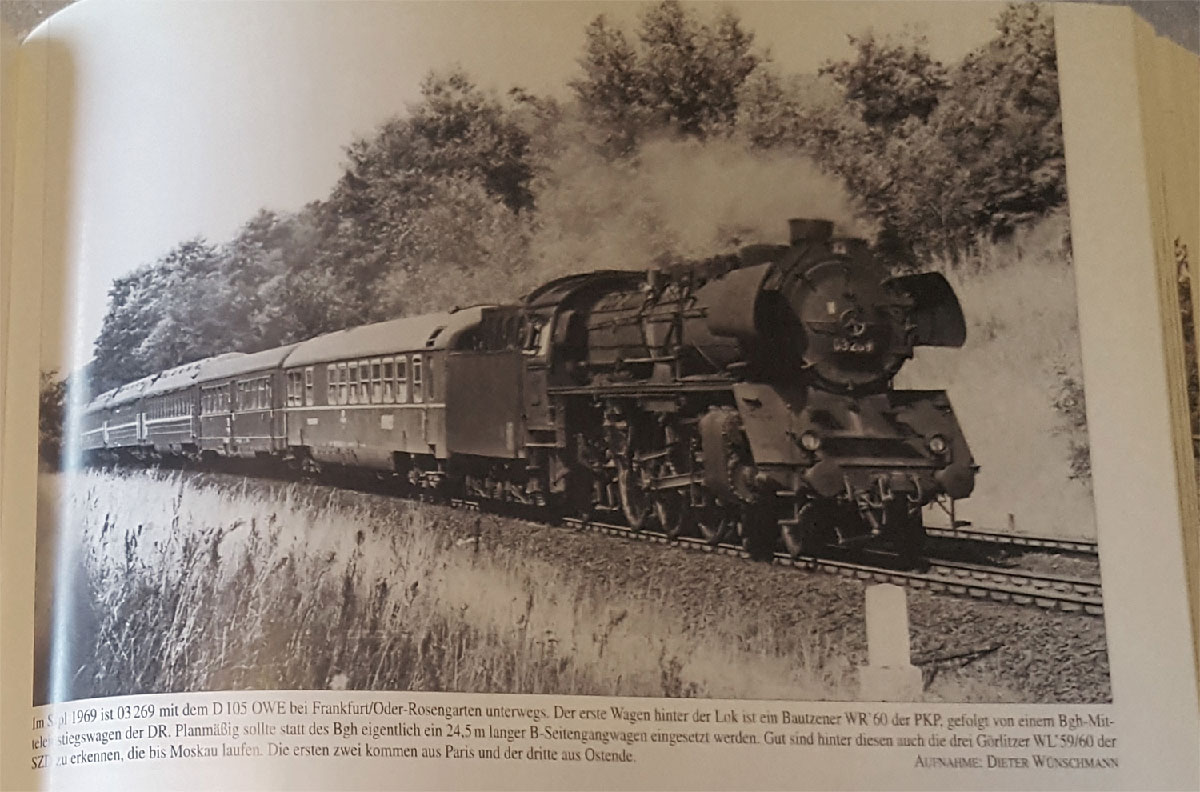 Albo te z książki Rico Boguli "Internationale Schnellzuge in der DDR" której fragment udostępnił użytkownik rosyjskiego forum - Ost-West-Express (1969) z naszą bautzenowską restauracją na czele lub w Moskwa-Express (circa 1964-65) razem z grupą "stodół" i naszą bagażówką dla okrasy: