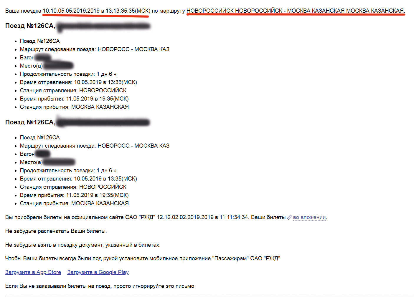 Да подтверждаю, приходит уведомление, но ребят на дату посмотрите Ваша поездка 10.10.05.05 в 13:35 13:35 так можно и перепутать чего. Когда туда покупал тоже пришло.