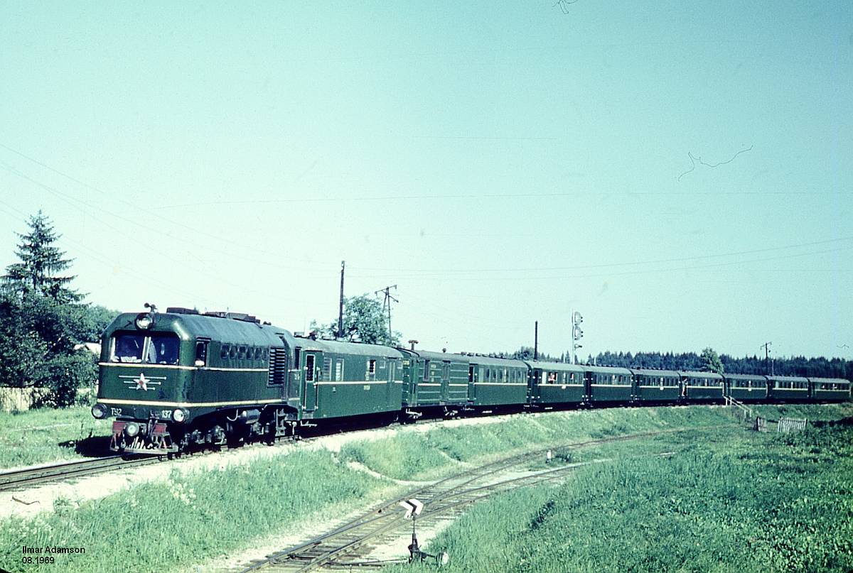 Тепловоз ТУ2-137 с пассажирским поездом на станции Тюри, Эстонская ССР (фото сделано в августе 1969 года):