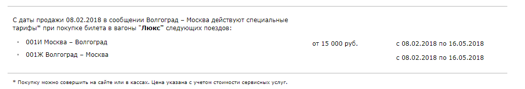 Люкс в этом поезде есть, начиная с 12 марта.bagrettin: А как можно воспользоваться этой акцией, если в поезде Москва-Волгоград нет вагона Люкс?