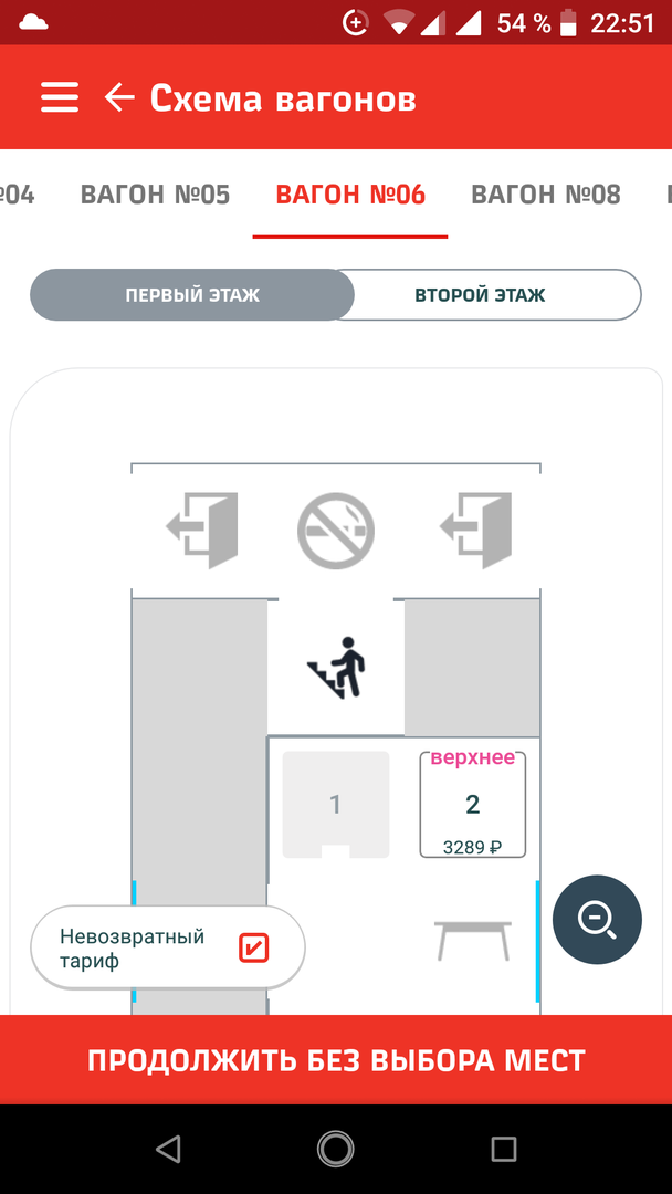 Ни фига не появляется! Вагон выбираю с невозвратными билетами: