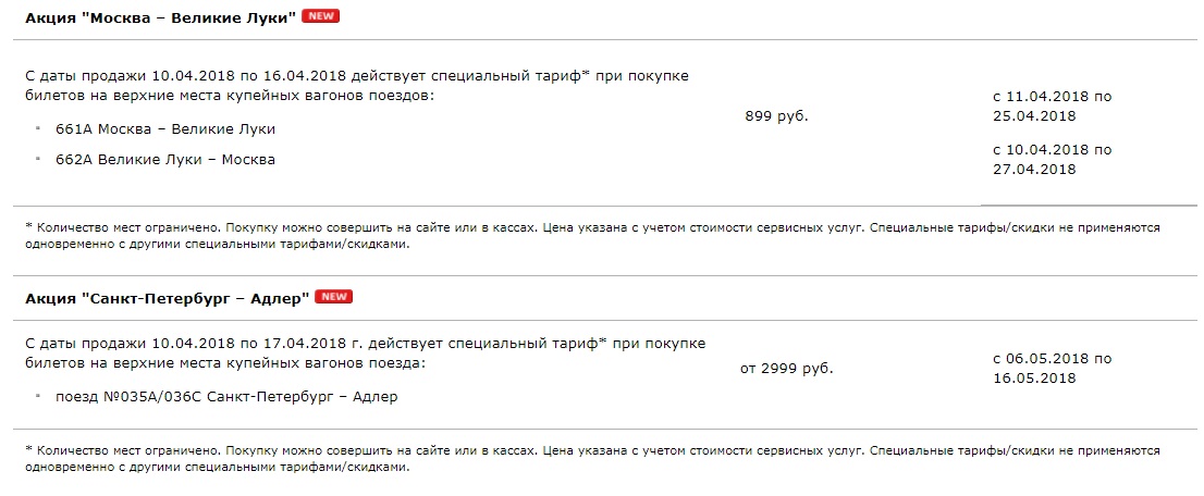 Акция "Москва – Великие Луки", акция "Санкт-Петербург – Адлер".