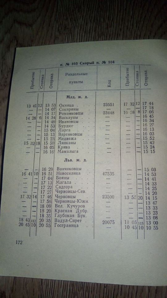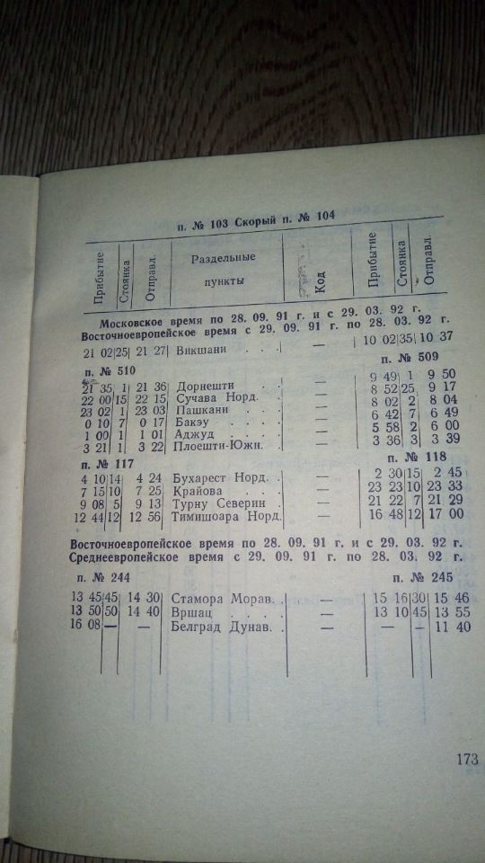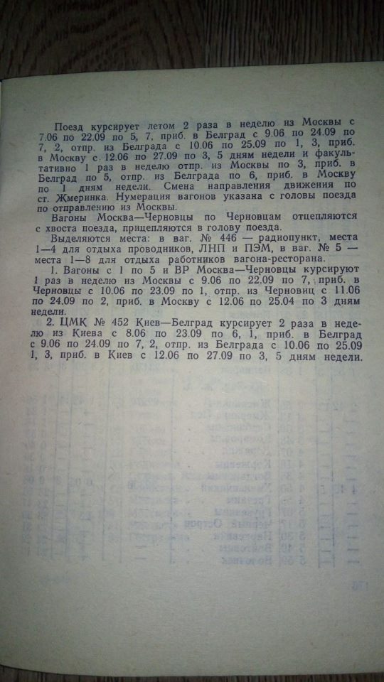 Službeni red vožnje voza Moskva - Beograd koji je tokom leta 1991. 2x nedeljno saobraćao preko Ukrajine, Moldavije i Rumunije u sastavu klimatizovanih vagona širokog ruskog profila.