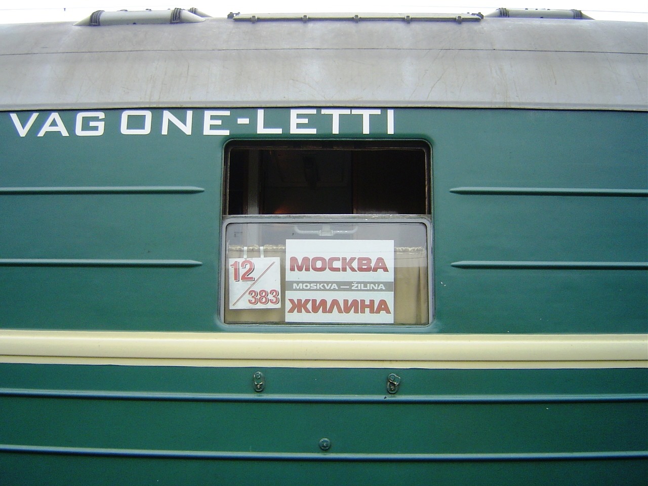 Спальный вагон RZD сообщением Москва - Жилина на станции Кошице, Словакия (10.04.2008):