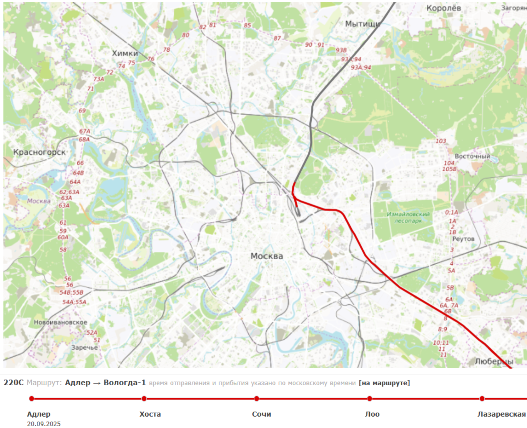 Проход поезда № 220 Адлер-Вологда через Москву-3: