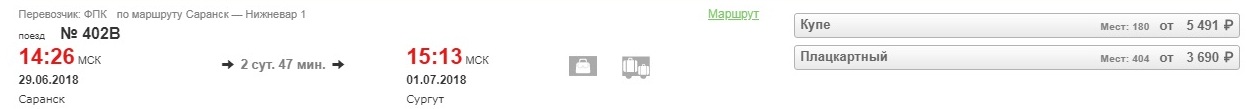 402В Саранск — Нижневартовск (только 17, 29 июня)