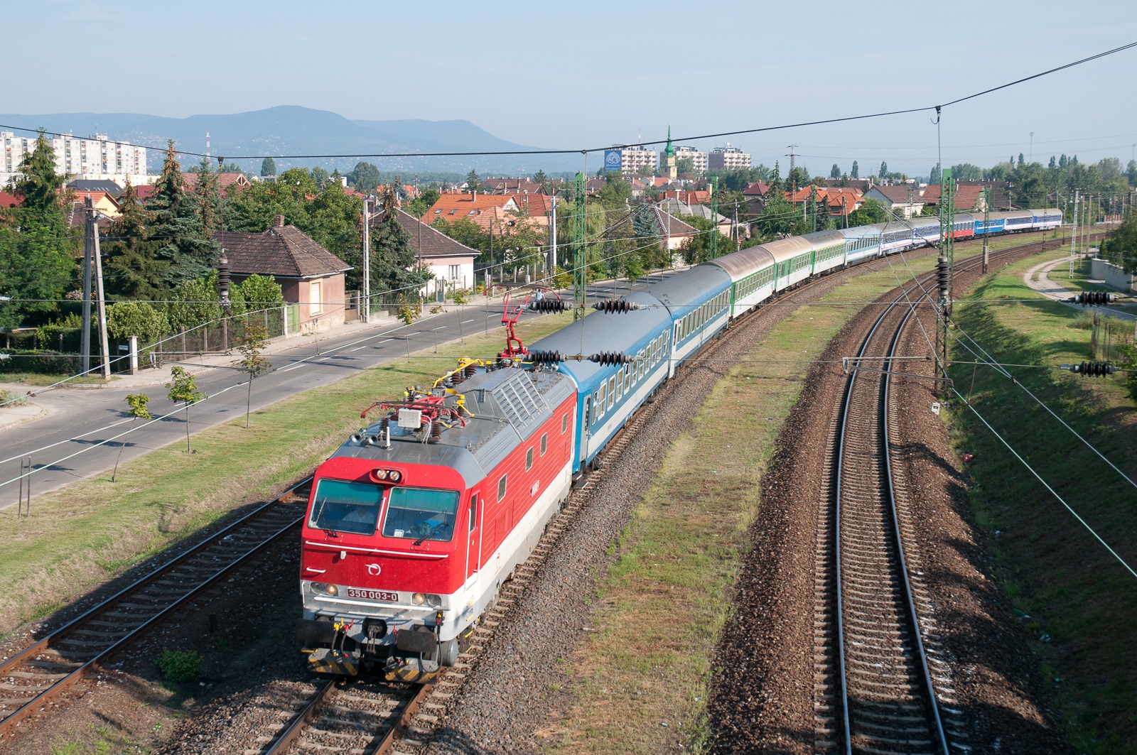 350 003-0 ZSSK bei Dunakeszi (HU) mit den Euronight 377 "Galileo Galilei" Františkovy Lázně 19h53 - Plzeň hl.n. 21h51/2h08 - Budapest Keleti pu 08h32 (08/08/2008 - 08h31).