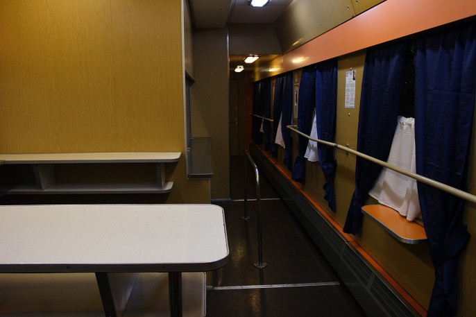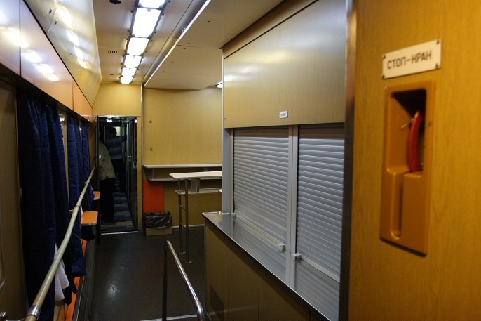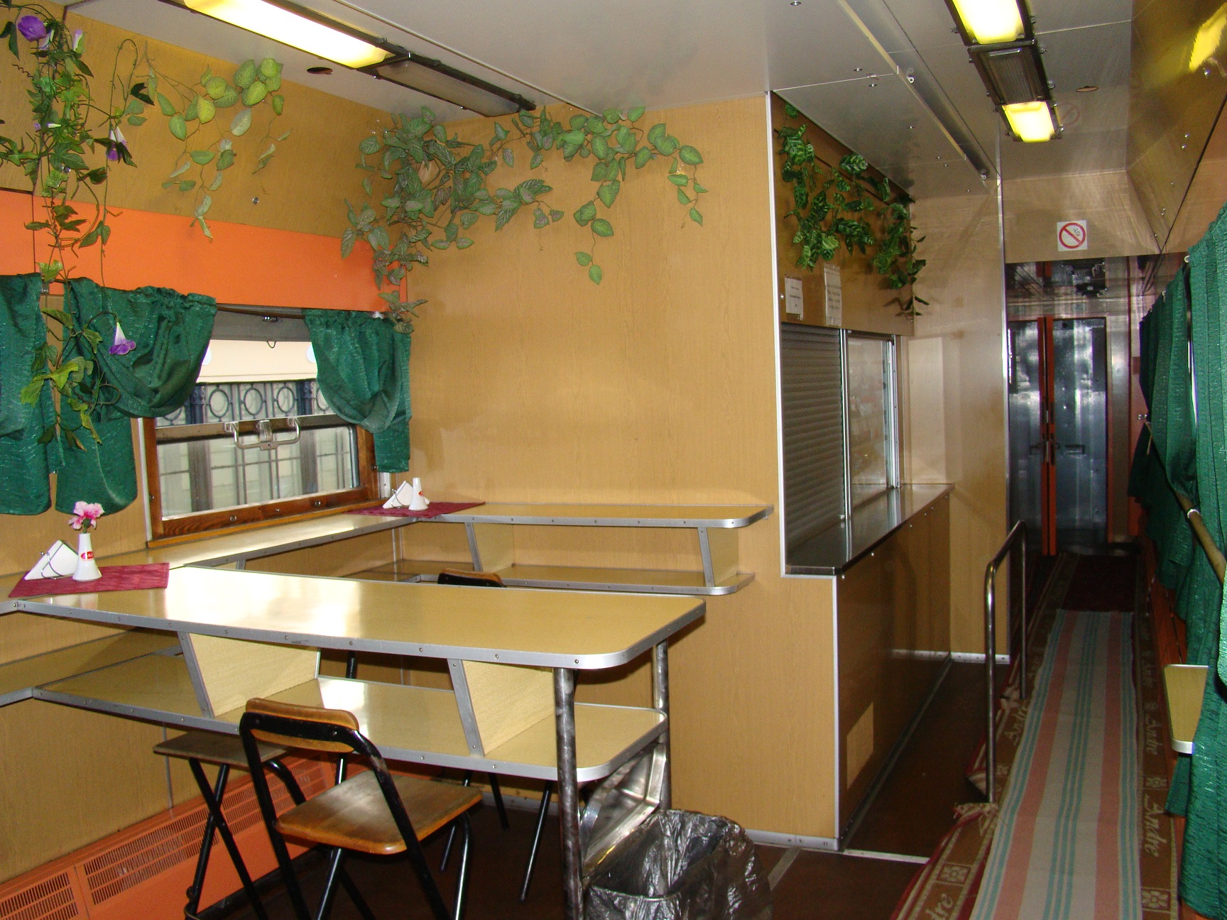 Более того, сейчас и Днепропетровские (?) диваны внутри — большая редкость, если вообще такие вагоны остались на сети. Сплошной "спортивный" Новороссийск в совершенно несуразных цветахtk: рестораны уже пошли с этим идиотским КВР типа американского дайнера с сиденьями «под спорт», или как это называется.